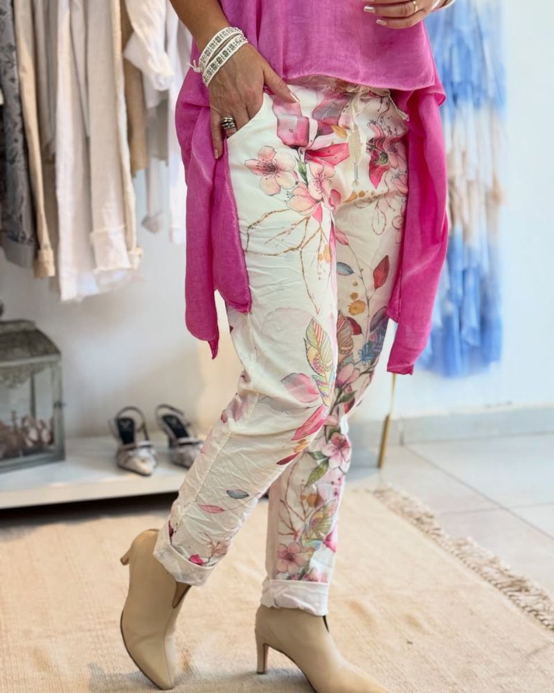 • Aansluitende broek met bloemenprint en opgerolde zoom voor een casual touch.
