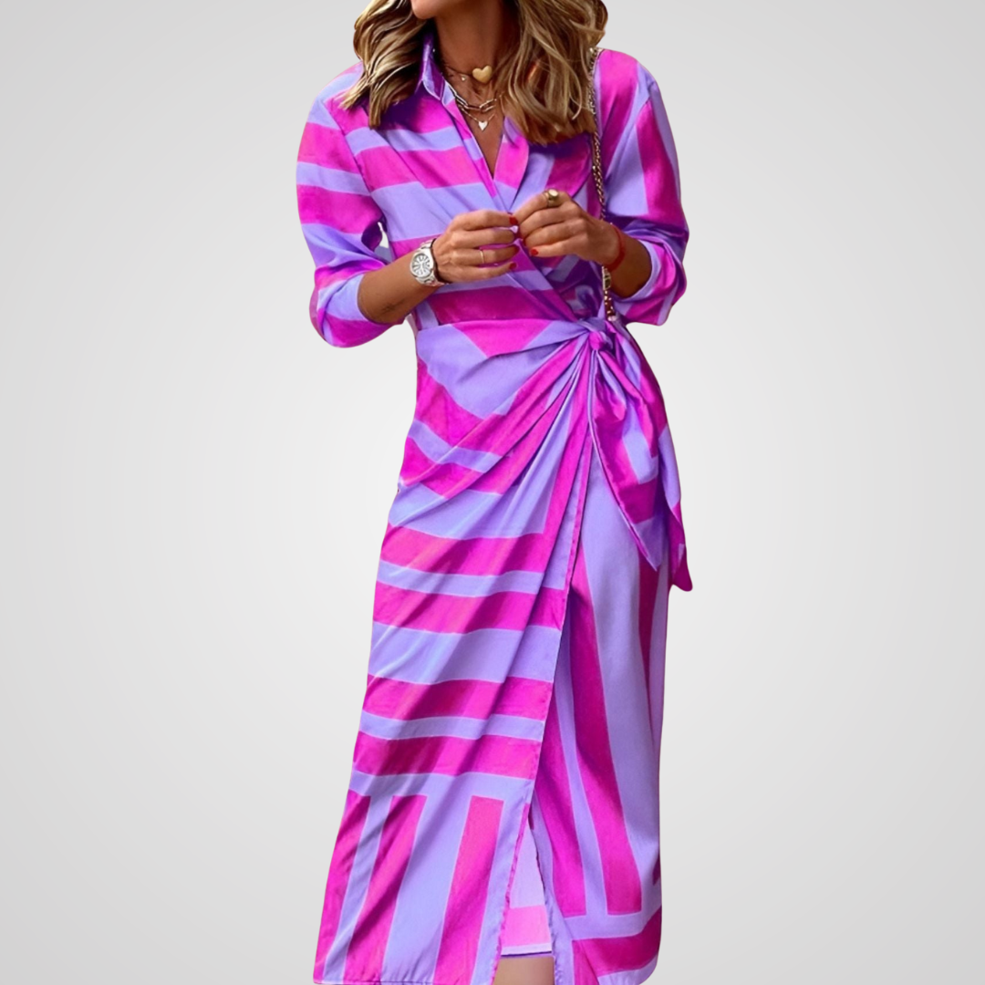 Lori™ is een echte eyecatcher. De diepe kleuren, het asymmetrische knoopdetail en de zijdezachte stof geven je look direct een krachtige elegantie – perfect voor events, diners of gewoon als je wilt opvallen.