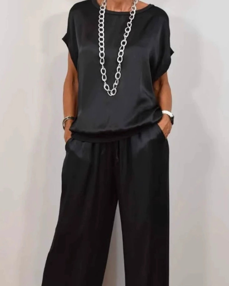 Het bestaat uit een losvallende top en een broek met wijde pijpen en biedt veel stylingopties.
